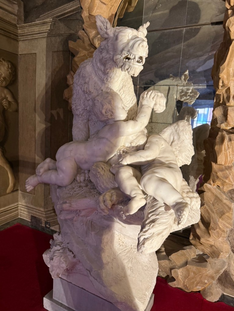 以下這是紅宮內有關一隻母狼哺乳二幼子長大建立羅馬的起源故事雕塑~