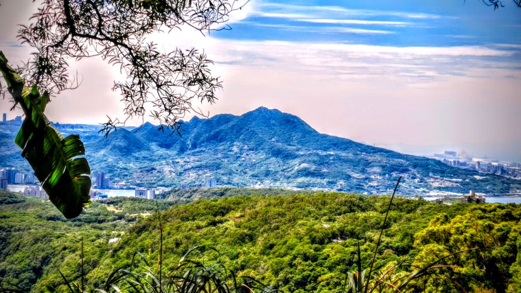 在山腰步道上,隅而西望隔著淡水河的觀音山,蓊蓊鬱鬱,浮出觀音臥姿的莊嚴山形,若隱若現,真是絕美。