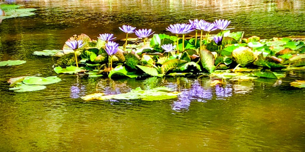 最後來到二子坪,曠野豁然開朗,景象清新。此時天空秋光盈晴,然尚有炙熱感,而池塘幾叢睡蓮,紫色蓮花早已朵朵綻放,佇足拍攝,令人心曠神怡,此登山之樂,盡在不言中也。