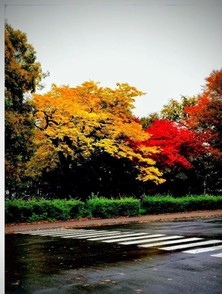 秋天的校園,是賞楓及銀杏勝地,深紅出淺黃,美不勝收;落葉滿地,難尋足跡,又還秋色,又還寂寞。秋涼風漸,楓樹零散分佈於道路旁,簇簇火紅,而著名的銀杏並木(大道)也從夏綠轉為秋黃,頗有更迭之美。