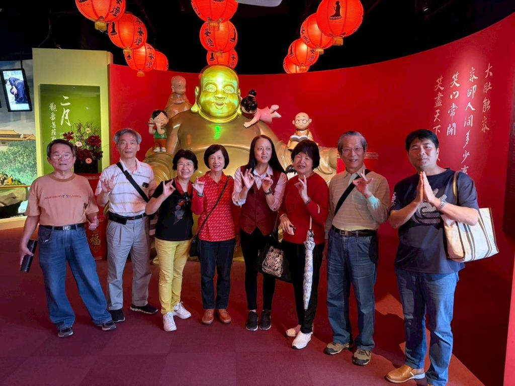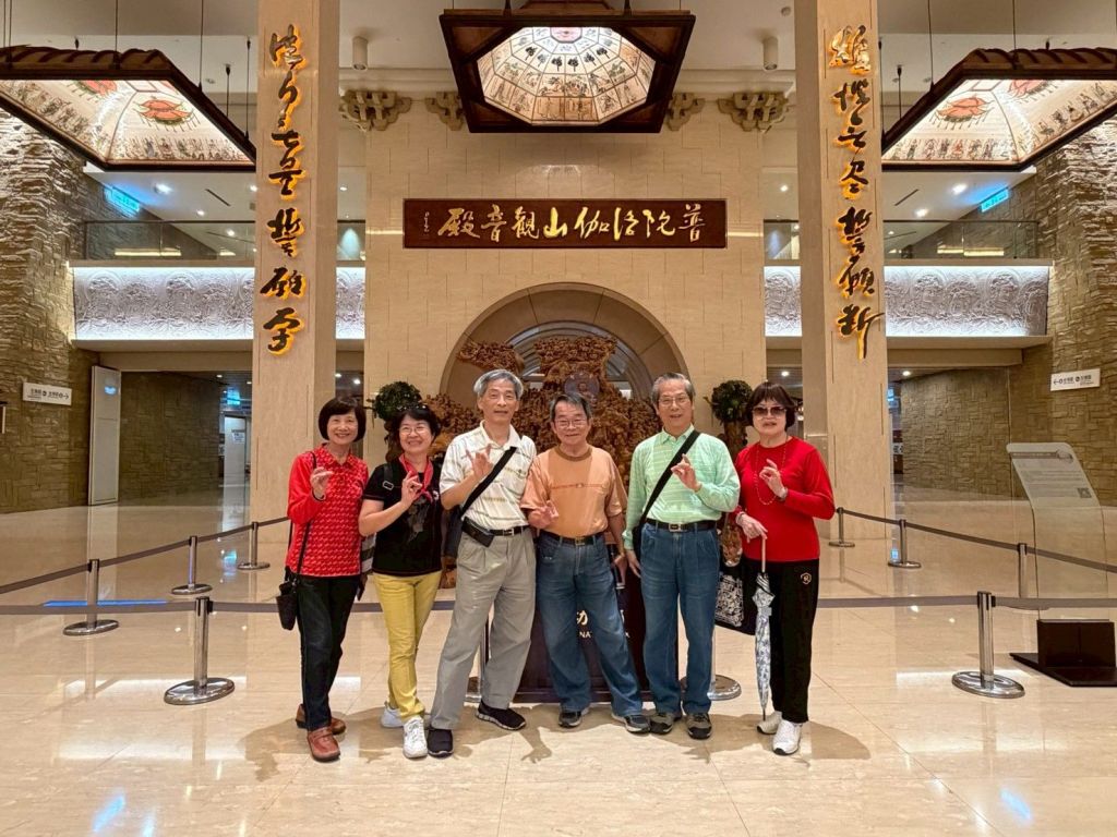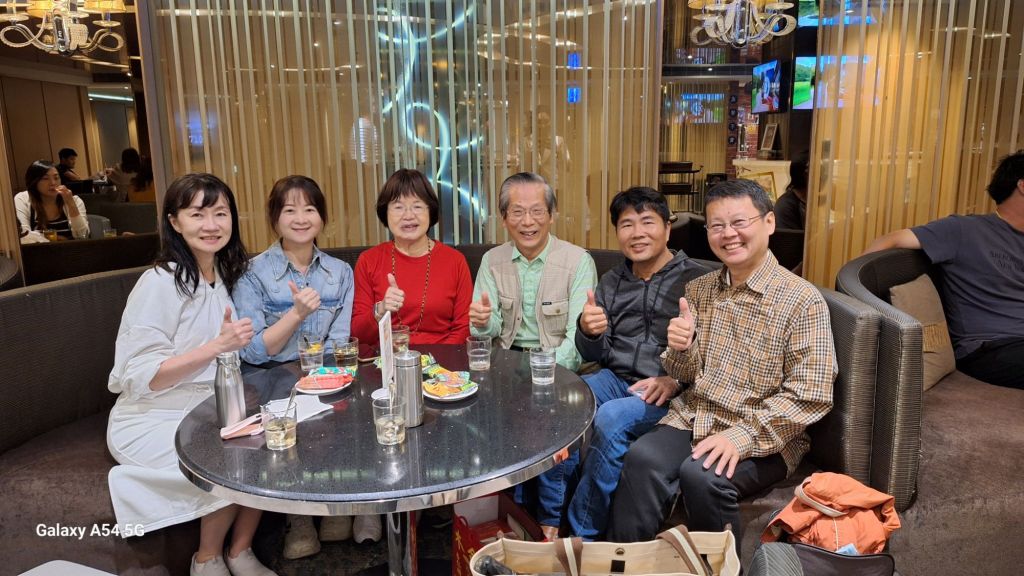傍晚,我的博士班學生國立屏東大學楊志強教授,則自行開車來佛光山〔佛陀紀念館〕會合,接著陪同遊覽〔佛陀紀念館〕各處景觀,如照片3。晚餐則至佛陀紀念館1樓〔漢來蔬食餐廳〕聚會餐敘。餐後,楊教授再開車載我們回高雄,夜宿高雄〔翰品酒店〕。晚餐後,在酒店7樓與屏東教育大學數理研究所5位碩士班學生聚會茶敘;如照片4。畢業二十多年了,學生們說我依然熱情滿點、活力滿格,腦筋還是轉得比他們這群「被社會磨到鈍掉」的同學還快。看到我在FB上那麼迅速、那麼豐富的照片分享,都懷疑我是不是已經偷偷升級成「教授版AI」了。能再次和學生們相聚真的超開心,留下這麼珍貴又精彩的回憶。