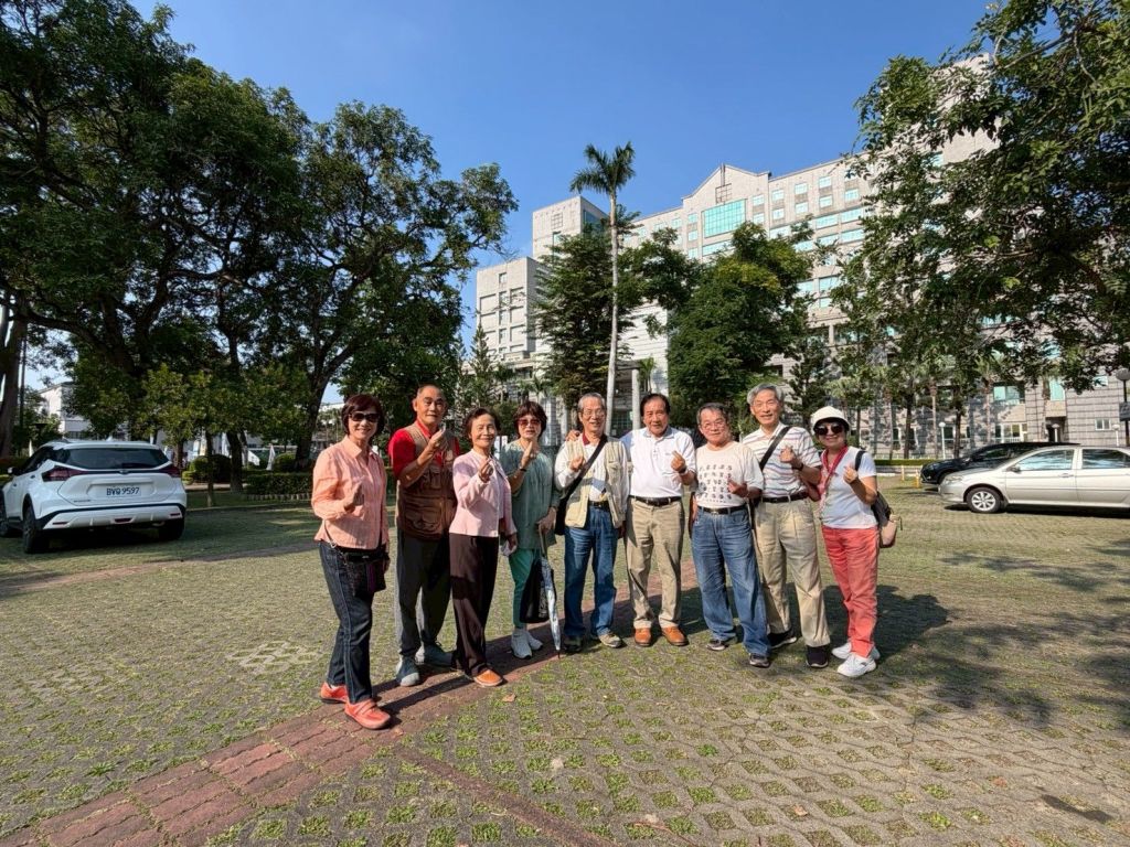 22日早上9:00楊志強教授開車來〔翰品酒店〕接我們,弟弟則自行開車前往屏東〔勝利星村〕會合。上午由楊教授導覽,遊覧〔勝利星村〕創意生活園區,如照片5。中午就近在〔必勝烘焙研製所〕餐廳午餐。適巧22日也是國立屏東大學舉辦校慶活動,我乃另行前往學校〔五育樓〕4樓402教室,参加退休教師聯誼會餐敘。今年是人事室第一次配合校慶活動,利用校慶典禮後請退休教師返校聚會聯誼餐敘。402教室是我以前在數理教育研究所授課的電腦教室,在聯誼會餐敘中遇見幾位我任職期間的老同事,敘敘舊並一起合照留念。