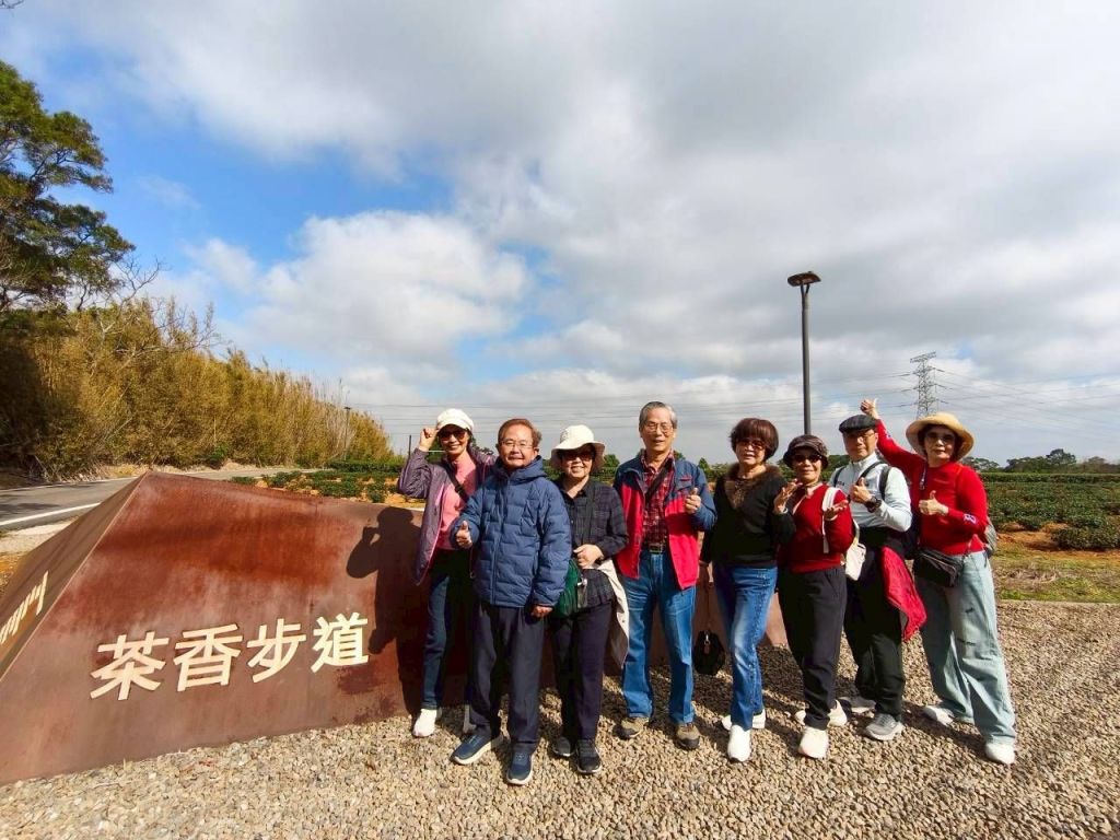 21日搭捷運文湖線前往文德站,與草屯同鄉學弟相約散步碧湖公園,中午至內湖〔中興眷村〕午餐,餐後再搭捷運返家。25日早上與幾位老朋友相約,搭捷運淡水線至台北火車站南一門8:00集合,搭吉航旅行社遊覽車出發。導遊黃文貞小姐沿途導覽解說,第一站前往新竹縣湖口鄉〔茶香步道〕漫步2.3Km平緩步道,茶園在北埔老街後山,走了仁和、翔湖、金獅三個步道,步道兩傍一片綠油油茶樹,茶葉上長滿白色茶花。它是昔日湖口裝甲兵步隊,在户外之訓練基地,我們並在香茶步道入口合照。第二站逛北埔老街,午餐品嚐傳統客家料理:板條、鹹湯圓、麻糬。第三站至新竹縣峨眉鄉〔富興茶葉文化館〕参觀,解說富興老茶廠三代歷史,與各式茶葉的製茶過程,接著品嚐東方美人茶、膨風茶。第四站散步遊覧峨眉湖。傍晚16:30返回文華東方酒店,在酒店1樓〔Cafe de LUGANO〕餐廳晚餐,合照如照片5,夜宿酒店。
