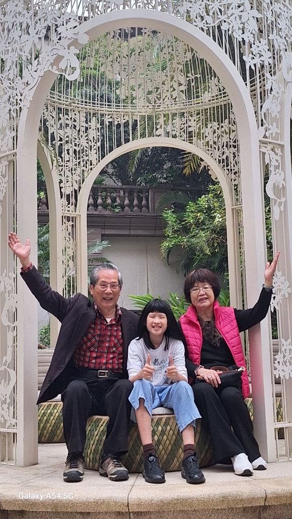 26日(週一)早上7:00,我們搭電梯至文華東方酒店5樓〔文華Cafe〕早餐吃Buffet 如照片6。餐後約9:00碩彥上班前順道開車載洪楨容來酒店會合,先帶她去酒店5樓、6樓参觀餐廳、游泳池、健身中心等設施,然後至7樓参觀我們住的725房間設備,在房間內休息看電視、玩手機,接著到1樓酒店廣場拍照,如照片7。中午12:00再整理行李辦理check out。整個上午在飯店內休憩,参觀飯店各處設施。中午12:30再搭taxi去SOGO(忠孝店)11樓〔旬彩神樂家〕吃日式料理午餐。洪楨容吃一套兒童餐,吃得很高興。餐後回文昌街休息,16:20再帶她去何嘉仁美語安親班参加期末同樂會,至18:30自行走回文昌街,17:30先去何嘉仁幼兒園,接雙寶回文昌街一起晚餐。