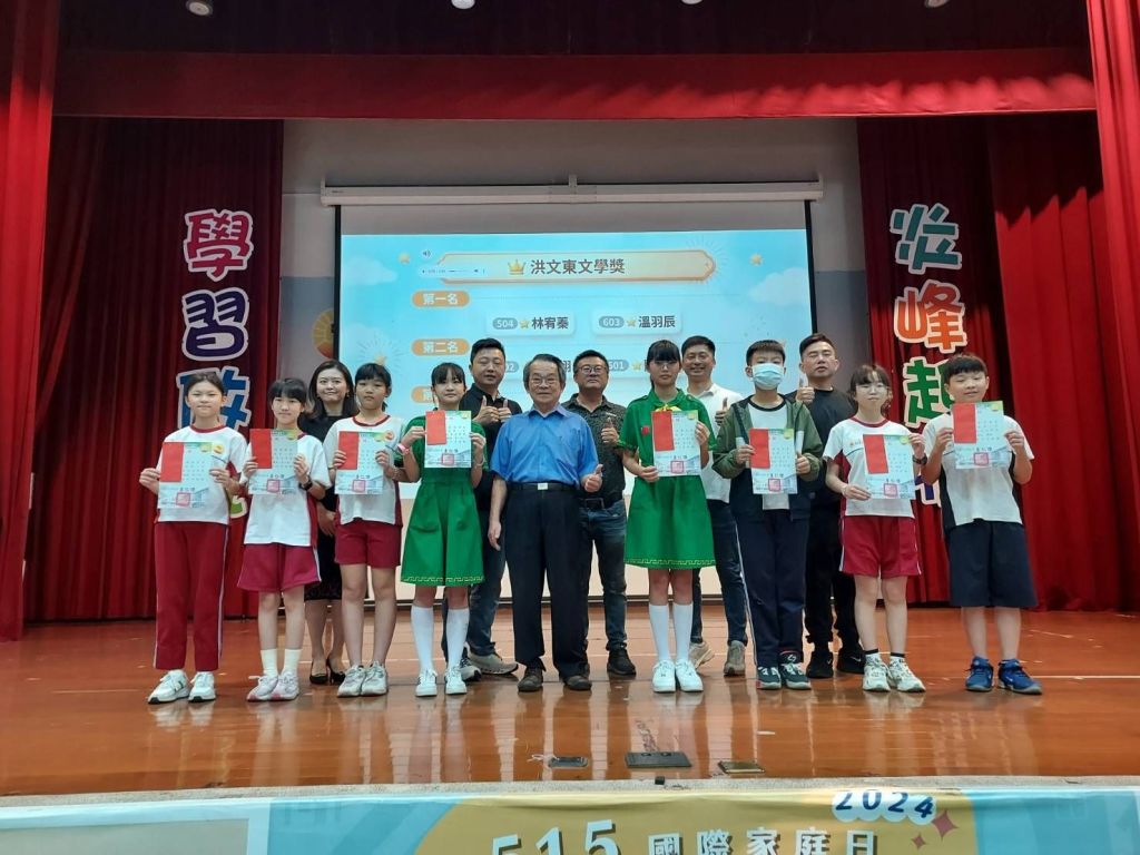30日(週一)早上8:00散步至國父紀念館轉搭捷運板南線至南港車站,走到南港轉運站搭9:00國光客運至烏石港終點站。走約10分鐘到世界灣渡假村,10:30~14::30休閒活動打電動麻將。14:30~15:30泡湯。16:05搭國光客運回台北南港站17:00,轉乘捷運板南線回國父紀念館,轉搭計程車至何嘉仁幼兒園接雙寶晚餐吃三商巧福。31日(週二)我的母校草屯鎮炎峰國民小學慶祝兒童節大會,在學校大禮堂頒發〔洪文東校友文學獎〕,因為在台北有福智廣論班要上課,有請我的大哥代理頒獎,如照片,如照片7。
